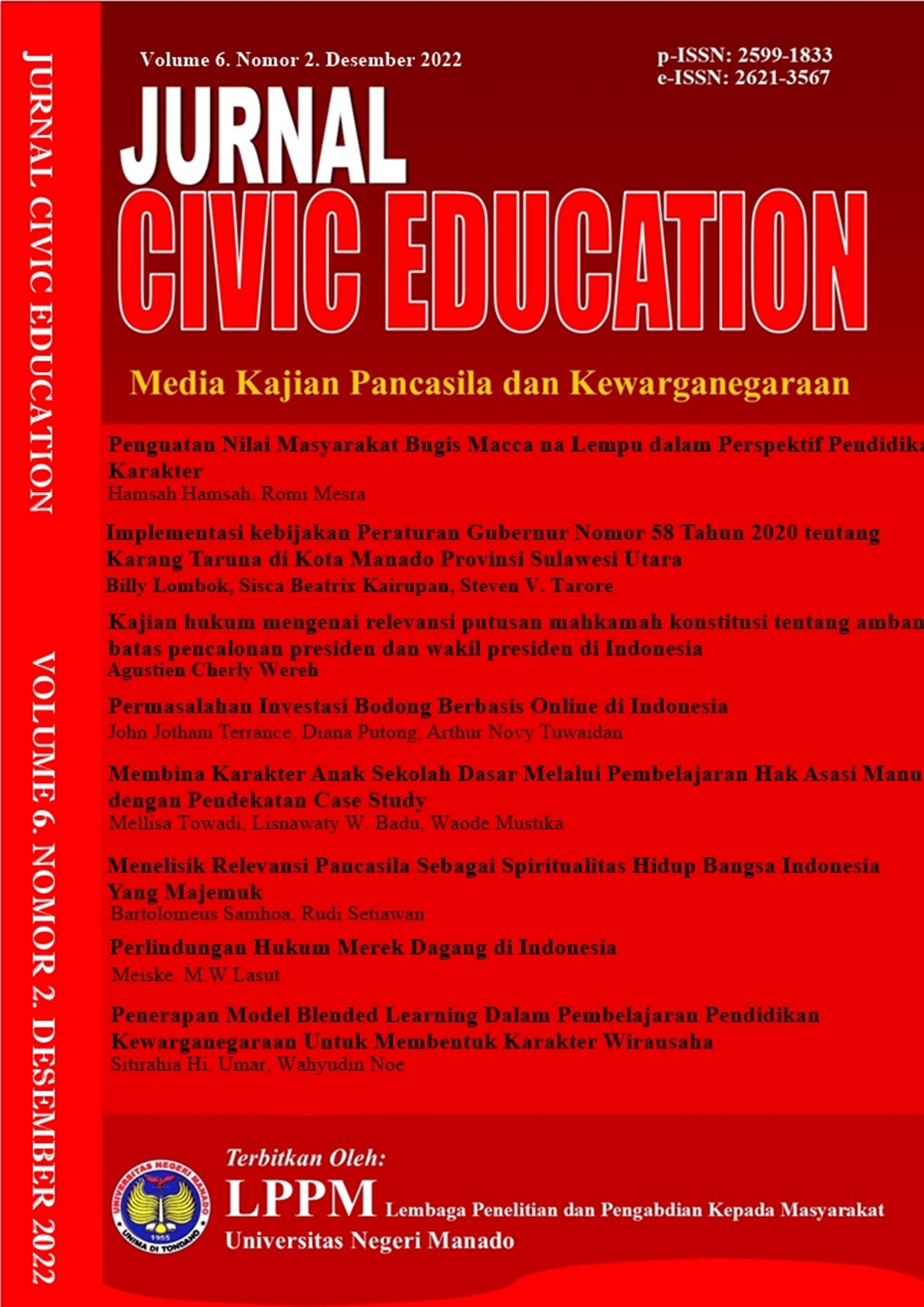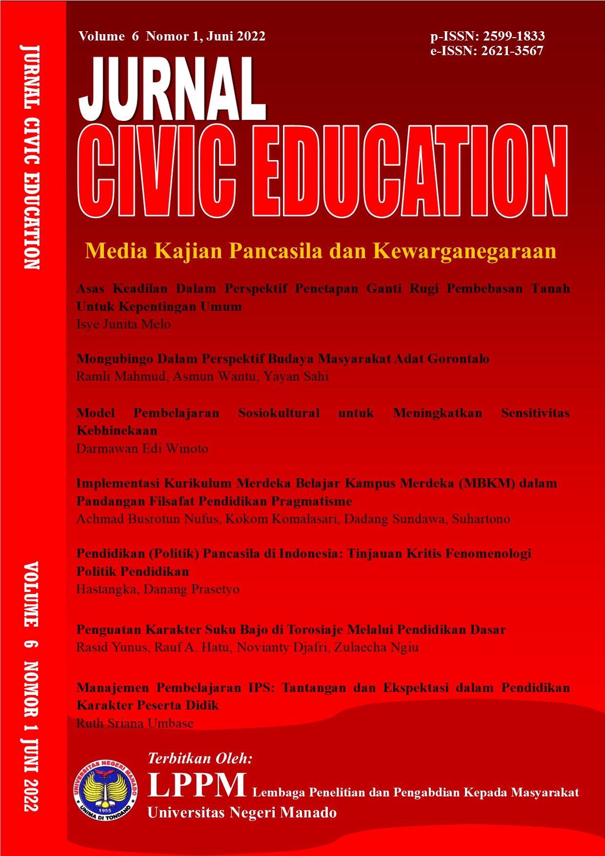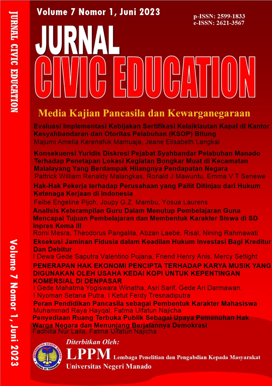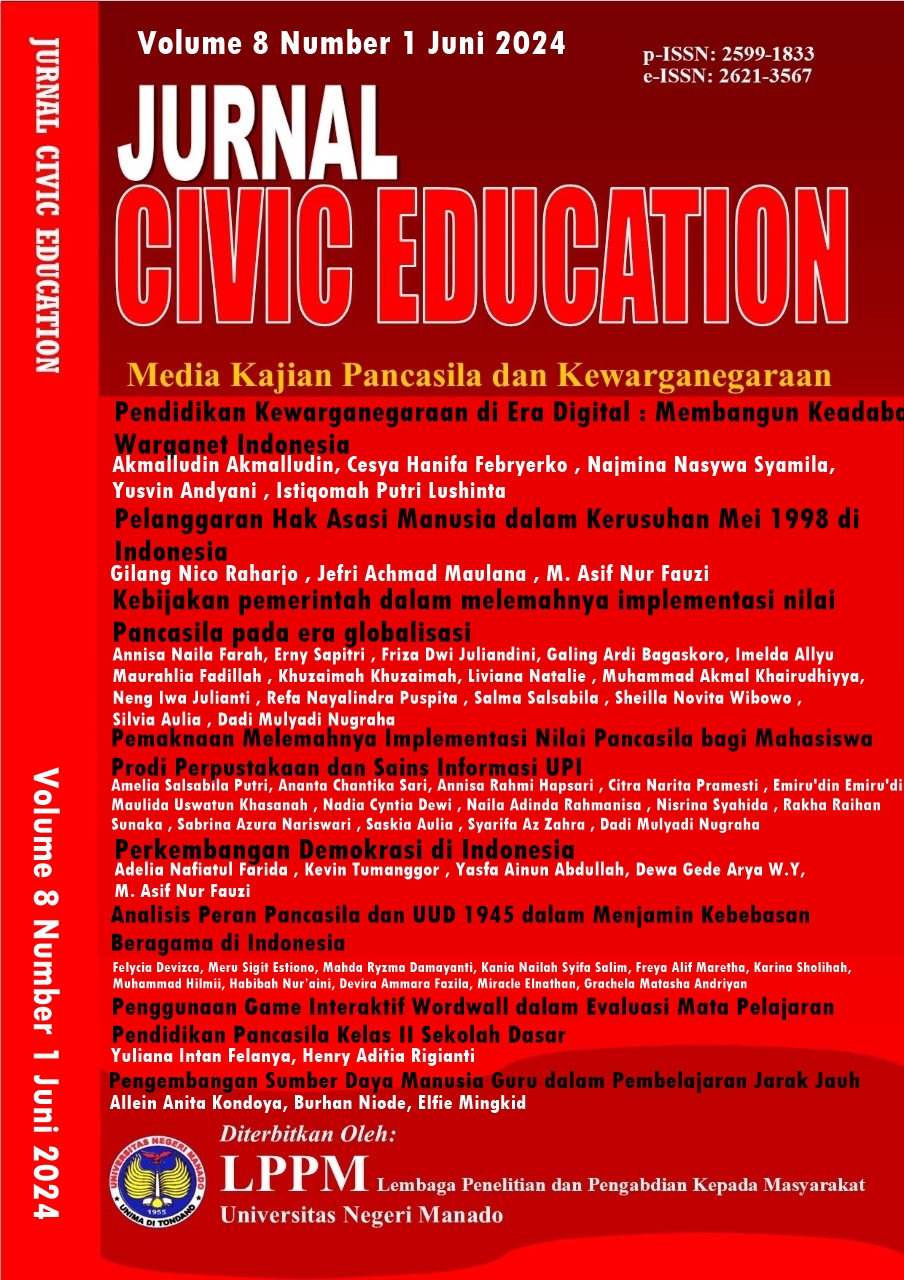 Copyright of Journal Civic Education (p-ISSN: 2599-1833, e-ISSN: 2621-3567)