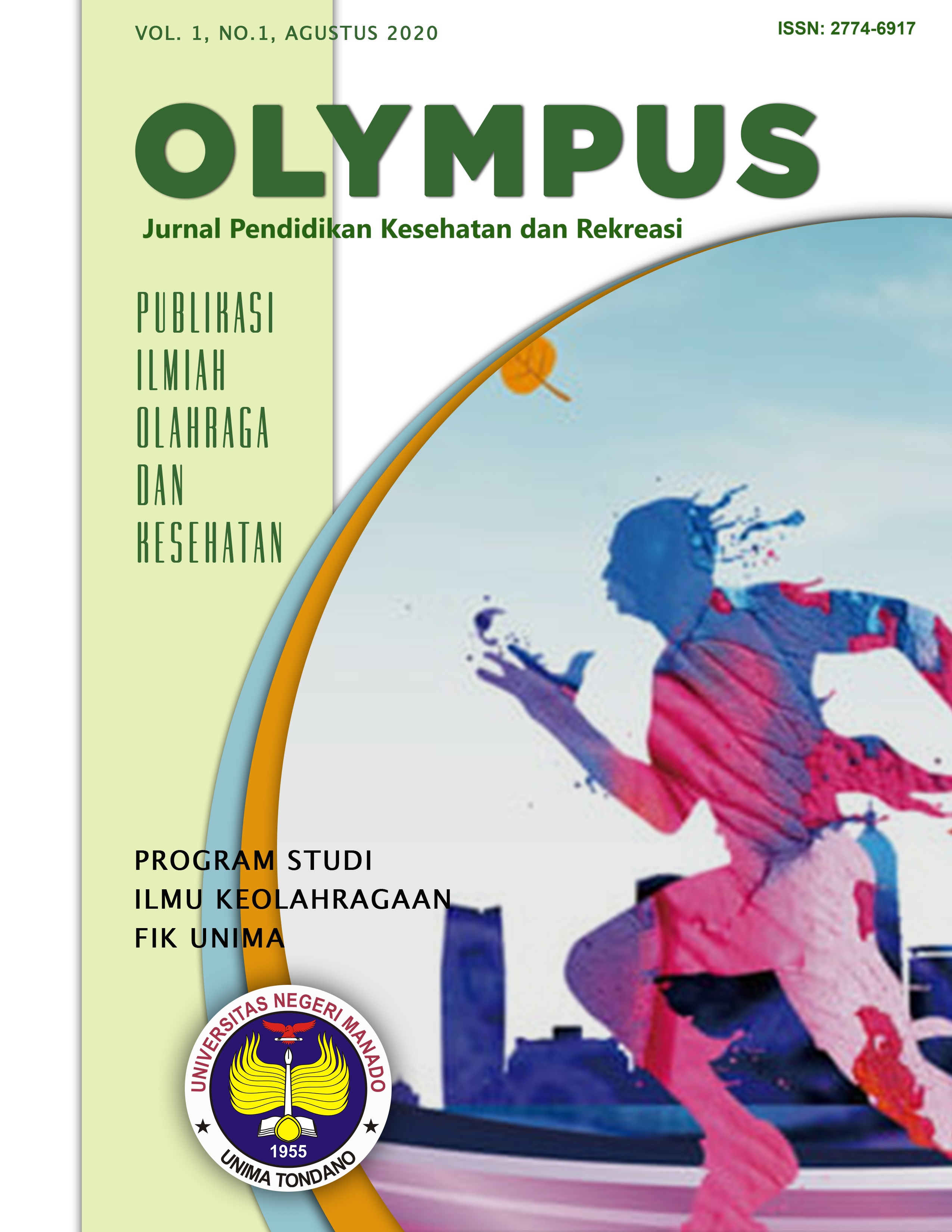 Olympus: Jurnal Pendidikan Kesehatan dan Rekreasi is managed by the Sports Science Study Program, Faculty of Sports Science Universitas Negeri Manado, Indonesia in collaboration with P2SIKI which is a forum for researchers and students to display research results in the field of sports in the form of journal scientific work.